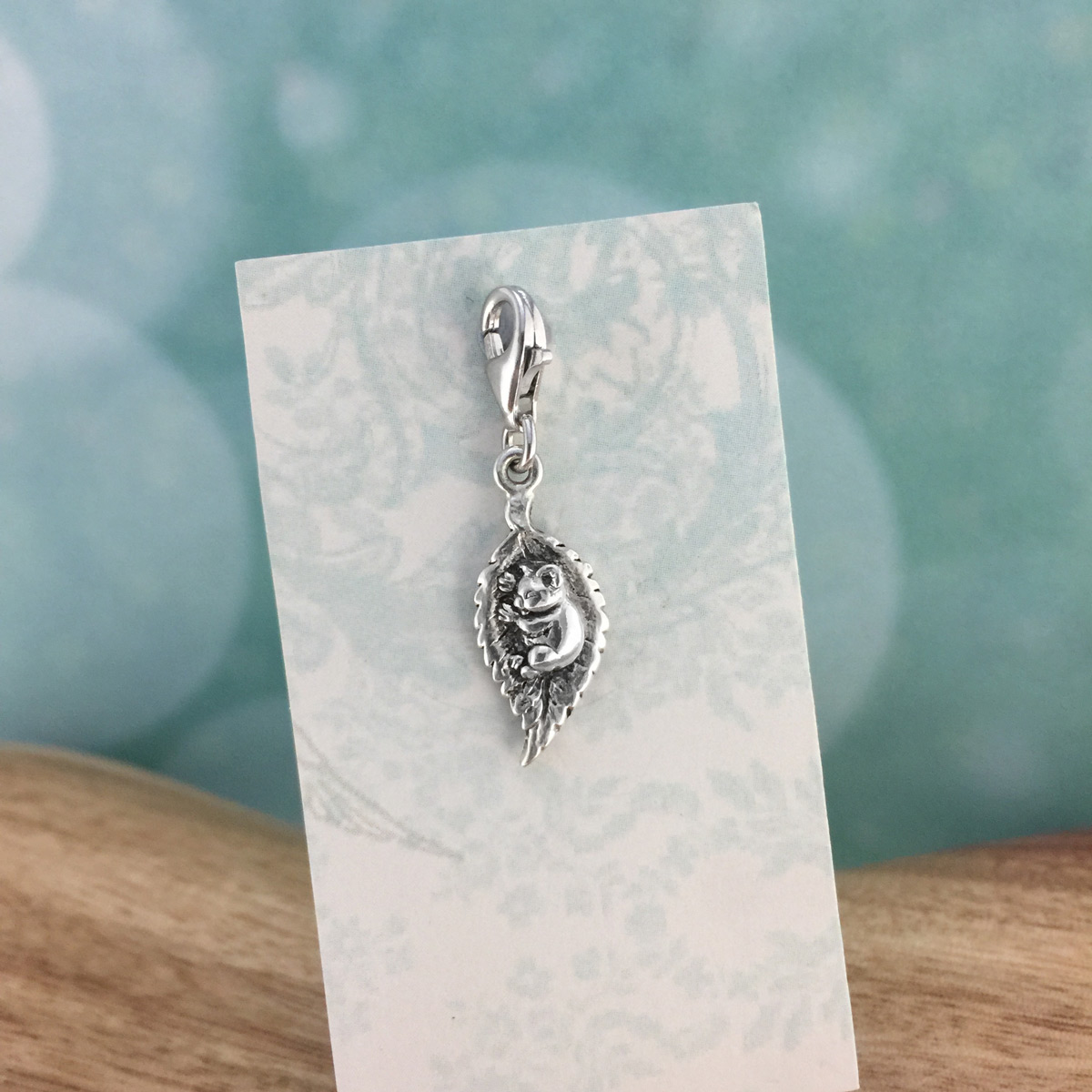 Australian made, genuine 925 hallmarked solid sterling silver charm featuring a superbly detailed baby native Australian baby koala (joey). 8mm x 20mm (without clasp).
