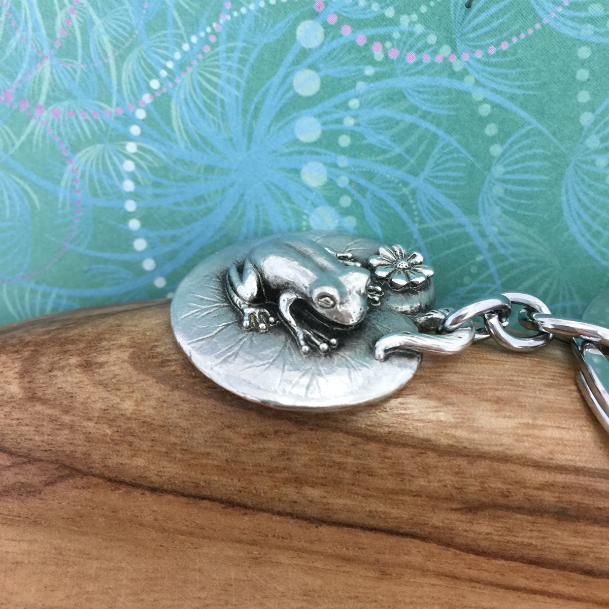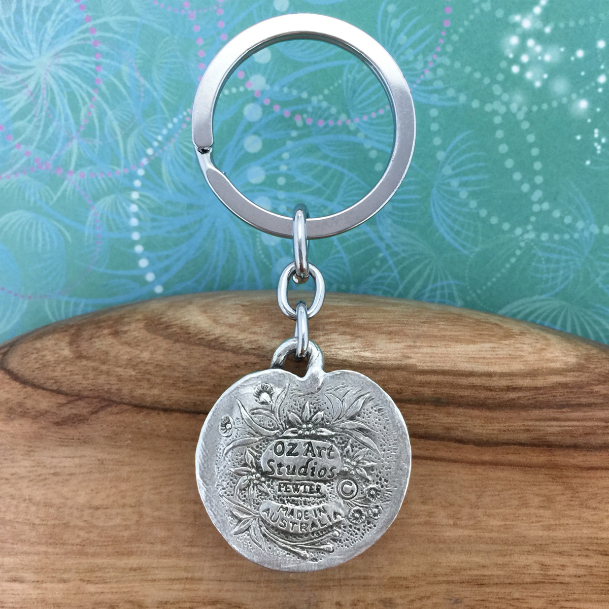 Intricately detailed keyring featuring a frog. Made in Australia out of the finest lead-and-nickel-free pewter. Entire length: 7cm.