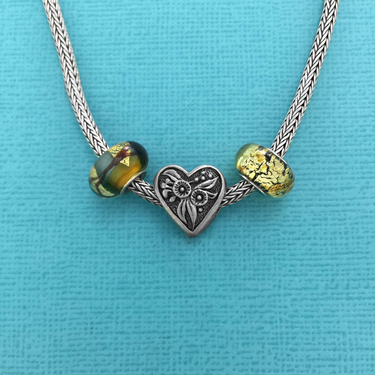 Intricately detailed heart bead charm featuring the native Australian kangaroo & koala. Made in Australia out of the finest lead-and-nickel-free pewter. 13mm x 13mm. Hole size: 4.5mm.