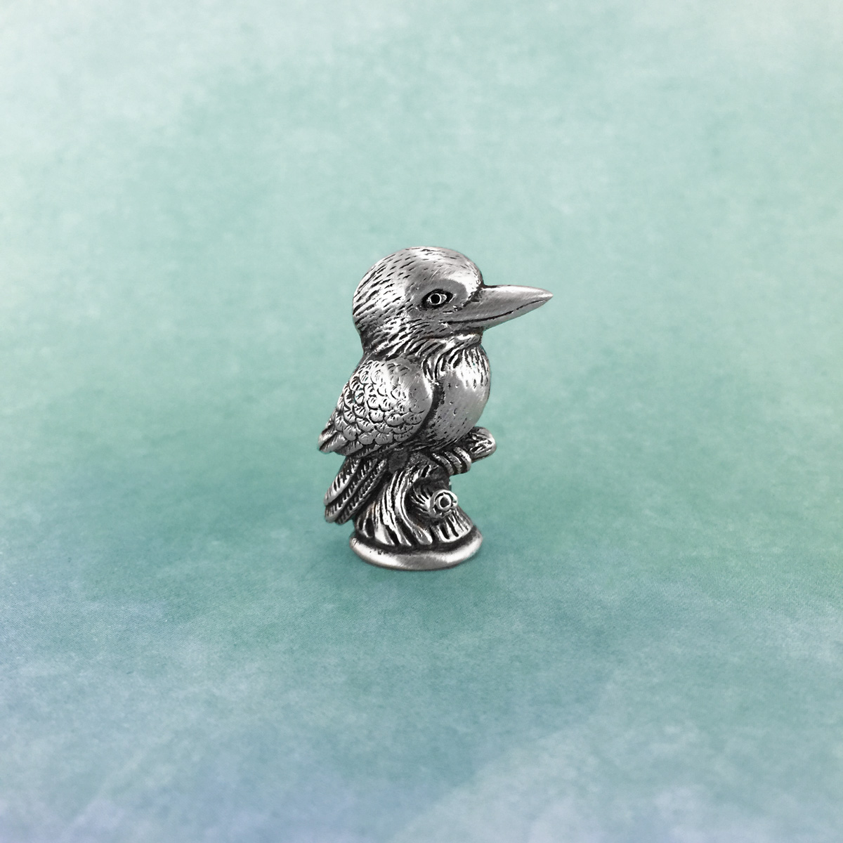 Intricately detailed kookaburra micro figurine. Made in Australia out of the finest lead-and-nickel-free pewter. Height: 3cm.