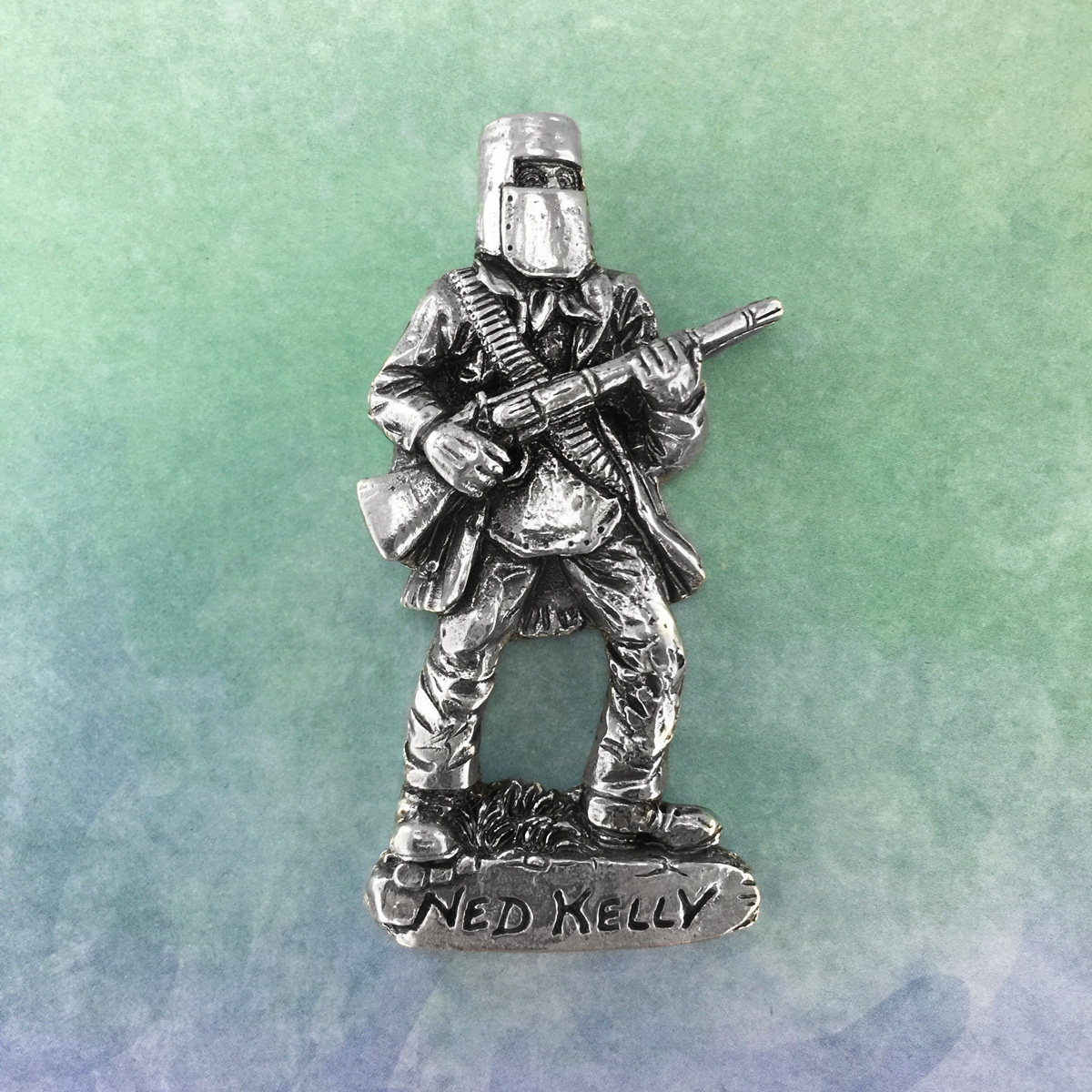 Intricately detailed fridge magnet featuring Ned Kelly. Made in Australia out of the finest lead-and-nickel-free pewter. Height: 7.7cm.