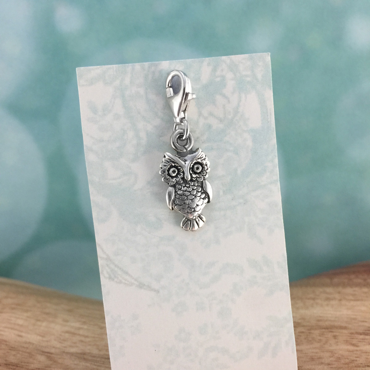 Australian made, genuine 925 hallmarked solid sterling silver charm featuring a superbly detailed owl. 9mm x 18mm (without clasp).