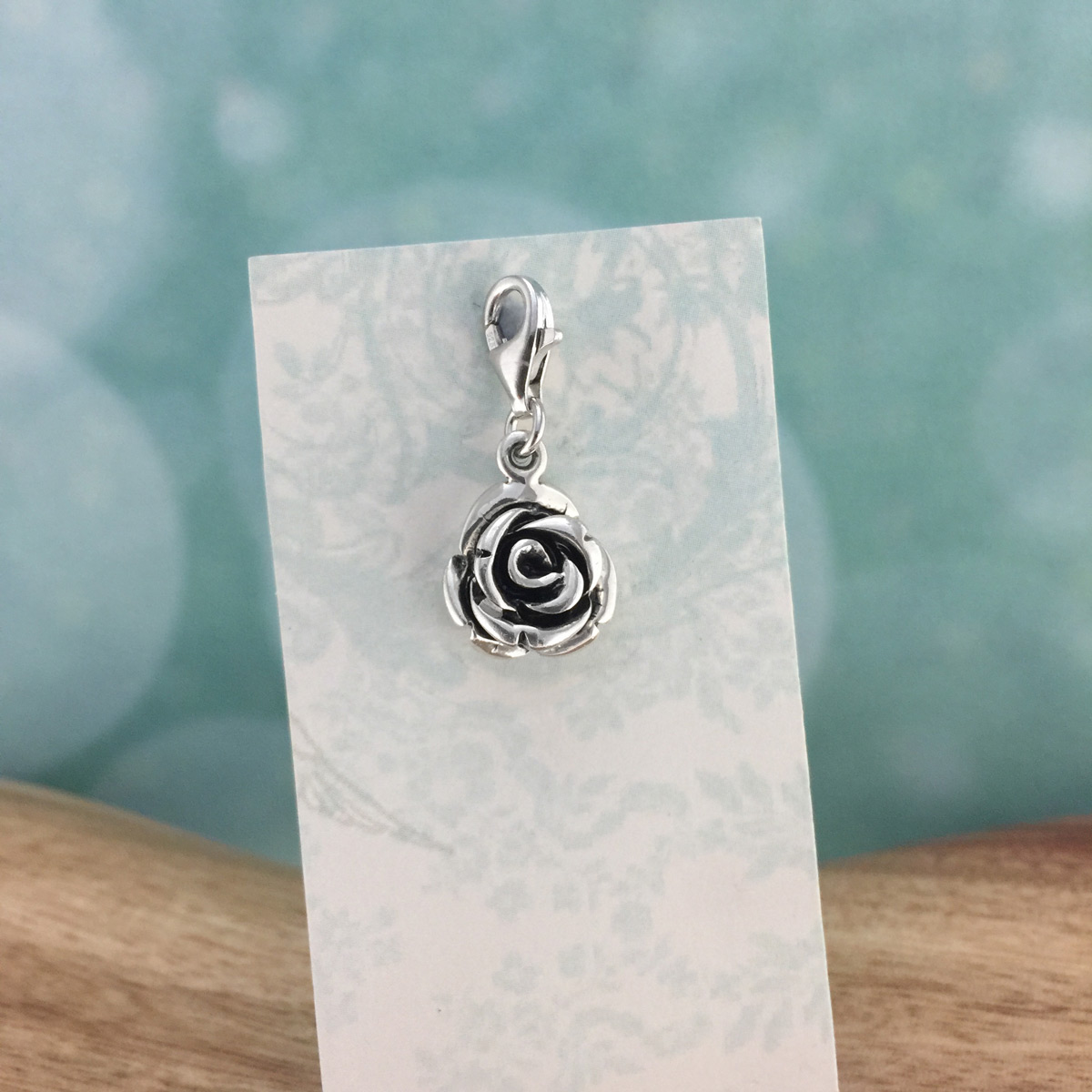 Australian made, genuine 925 hallmarked solid sterling silver charm featuring a superbly detailed rose. 11mm x 15mm (without clasp).