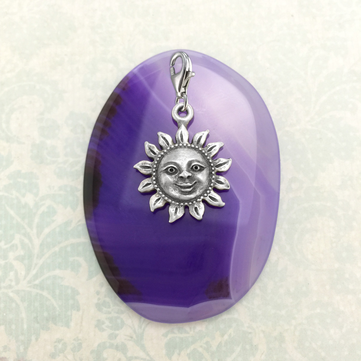 Intricately detailed sun charm. Made in Australia out of the finest lead-and-nickel-free pewter. 20mm x 25mm (without clasp).