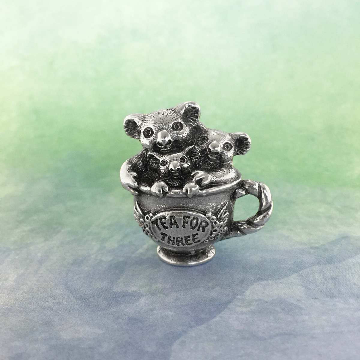 Intricately detailed figurine featuring native Australian koalas. Made in Australia out of the finest lead-and-nickel-free pewter. Height: 3.5cm.